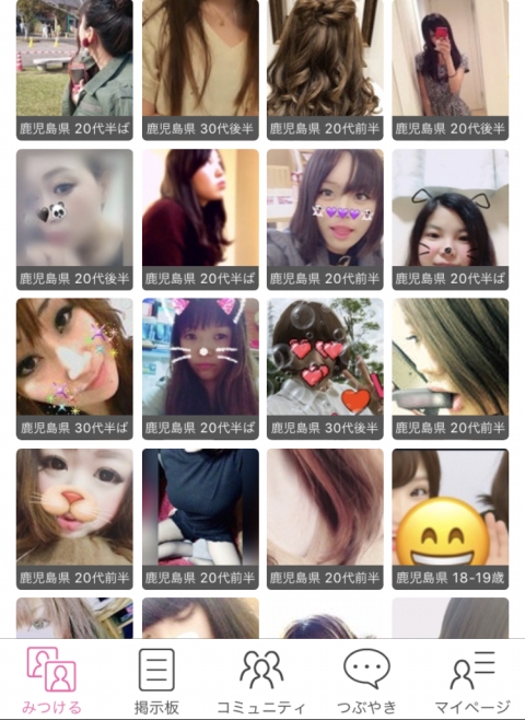 登録したらトップ画面でエリアを鹿児島に絞り込むと男女の書き込みが現れます。